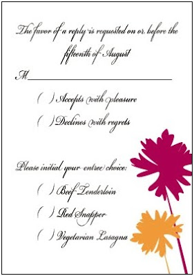 Two windblown flowery puffs decorate this chic, modern wedding invitations design. Simple, minimalist graphics mixed with decorative fonts give this formal invite modern flair.
